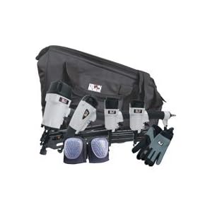 Product Description : Tools have a 360 degree adjustable exhaust, one piece driver blade, comfort grip handles, adjustable depth control, and non-marring safety contact. Brad stapler: dual-mode trigger, 2n1, 1-1/4 in., 18 gauge, 3/8 in. - 1-1/4 in. brad and staplers, 100 piece capacity and weighs 2.27 lbs. Brad nailer: 2 in., dual-mode trigger, 18 gauge 3/8 in. - 2 in. brads, 100 piece capacity and weighs 2.86 lbs. Finish nailer: 2-1/2 in. 34 degree angle, ergonomically engineered body, quick-jam release, 16 gauge 1-1/4 in. - 2-1/2 in. finish nails, 100 piece capacity and weighs 4.62 lbs. Framing nailer: 3-1/2 in., anti-dry-firing design, 21 degree full round head 2 in. - 3-1/2 in. nails, 55 piece capacity and weighs 9.28 lbs. Also includes: safety goggles, gel knee pads, safety gloves, lubricating oil, air connectors, adjustment tools, and tool bag.