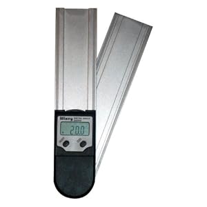 Product Description : From the ManufacturerThis protractor offers +/- 0.1 degree accuracy and repeatability along with the convenience and ease of use of a digital display. It can be used in any plane which makes it ideal for setting both bevel and miter angles on a variety of woodworking tools. The WR410 has a resolution of 0.1 degrees along with an accuracy and repeatability of +/- 0.1 degrees. It has a range of +/-180 degrees which gives it the ability to cover most of the angle measuring needs of any woodworker. The WR410 includes embedded magnets in all edges of the blades to allow them to attach to cast iron tables and steel saw blades for easy angle setting. It has the added feature of a friction lock which enables them to hold the blades in a fixed position for transferring angle measurements. WR410 has 8-inch long blades which makes it ideal for setting miter saw miter angles and is perfect for larger measuring and layout functions. The simple functions include only an ON/OFF button and a ZERO button making it easy to understand and use. Product Description : Use this Wixey digital protractor electronic angle gauge to get quick, accurate measurements of existing angles like mitered trim work, crown molding, roof slopes, and wall corners. This tool is particularly handy when measuring the true angle of inside and outside wall corners for tight fitting crown or base molding and chair rail miter joints. Large easy to read display reads angles from 0 to 180 degrees, and can be zeroed at any point in the swing of the protractors leg. Whether you are measuring an odd, hard to reach angle or setting up your table saw blade, just read the angle measurement directly from the digital protractor. Each 9" long x 2" wide aluminum leg has built in magnets to help hold the protractor to metal surfaces.