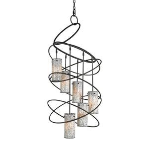 Vendor: Black finish with accents White mosaic glass Requires six (6) 60-watt candelabra base bulbs (not included) 23 inches wide x 47
