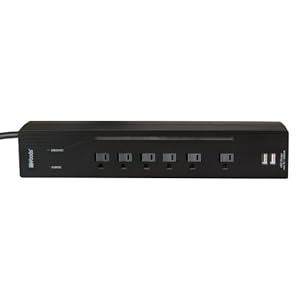 Product Description : Woods 041500 6-Outlet Surge Protector (5-Regular + 1-Wider) 1500-Joule 4-Foot Cord Surge w/2 USB. Ideal solution for computers, printers, general household electronics, small home appliances, and internet modems. 6-Outlet, Cord Length is 4-Feet. Outlet direction is 90-Degree . Sliding Safety Covers - Slide to open/close; protects users from accidental contact and keeps dust and debris away from unused outlets. 1500 Joule Protection - a Joule is a measurement of energy. The higher the joule rating, the more energy the surge protector can absorb. Comes equipped with a lighted power switch to indicate power is flowing. red LED shows the unit is working properly and connected electronics are protected. EMI/RFI filtration allows for maximum performance by allowing only clean power to enter your equipment. illuminated green LED shows the unit is plugged into a properly grounded outlet - if green light is not lit, consult with a licensed electrician. Right Angle Plug - Allows furniture to be placed close to wall. Two convenient ports to recharge MP3 players, smartphones, and hands-free devicesWoods is Coleman Cable Company.